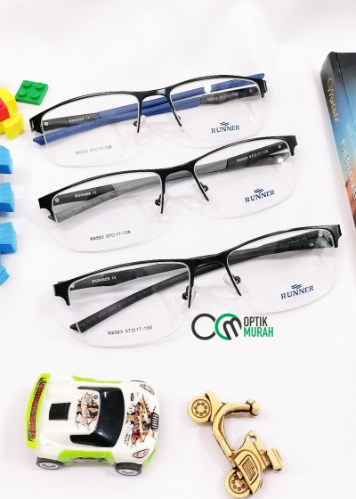 Kacamata sport cowok half frame atau semi rimless kotak RU 8503